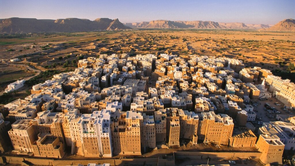 Ubicada en el corazón del valle de Hadramaut, al este de Yemen, Shibam es una ciudad que parece suspendida entre el tiempo y la arena. Fundada hace más de 1.700 años y reconstruida mayormente en el siglo XVI tras una gran inundación, esta ciudad amurallada fue diseñada como un oasis vertical en medio del desierto: una forma de protegerse de los ataques beduinos y del avance del clima hostil.
